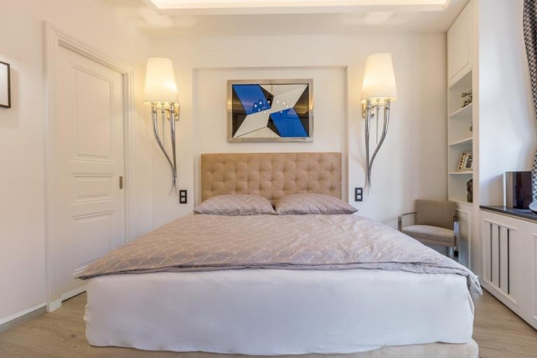 Představujeme vám na první pohled jednoduchou moderní kuchyni, která však v sobě ukrývá luxusní vybavení a prvotřídní materiály! Masivní pracovní deska je vyrobena z pravé žuly a její bohatá šedá textura tvoří nejtmavší sekci celého koutku. Pod linkou vede symetricky sestavená sada skříní a šuplíků v zářivě bílé barvě. Téměř všechna dvířka a zásuvky jsou bez jakkoli viditelných úchytů. Tam, kde úchyty najdete, zpravidla také objevíte jeden ze špičkových spotřebičů Miele.