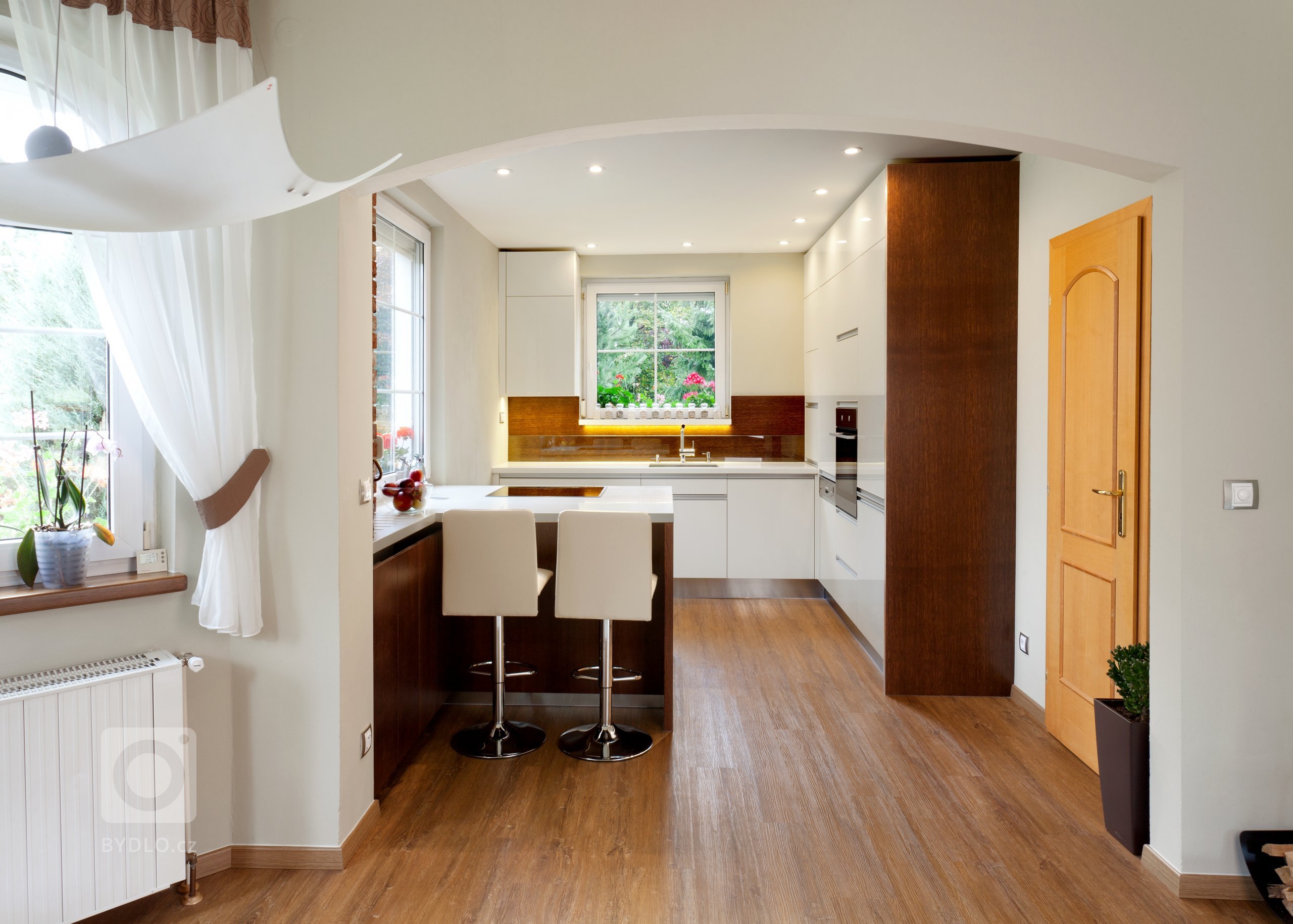 Představujeme vám malebnou kuchyň, která kombinuje moderní bílé povrchy s teplými tóny dubového dřeva. Přestože místnost není zrovna prostorná, i tak se nám podařilo skvěle ji vybavit – a to doslova od podlahy ke stropu! Kompaktní systém úložných prostor je vybaven zapuštěnými úchyty,…