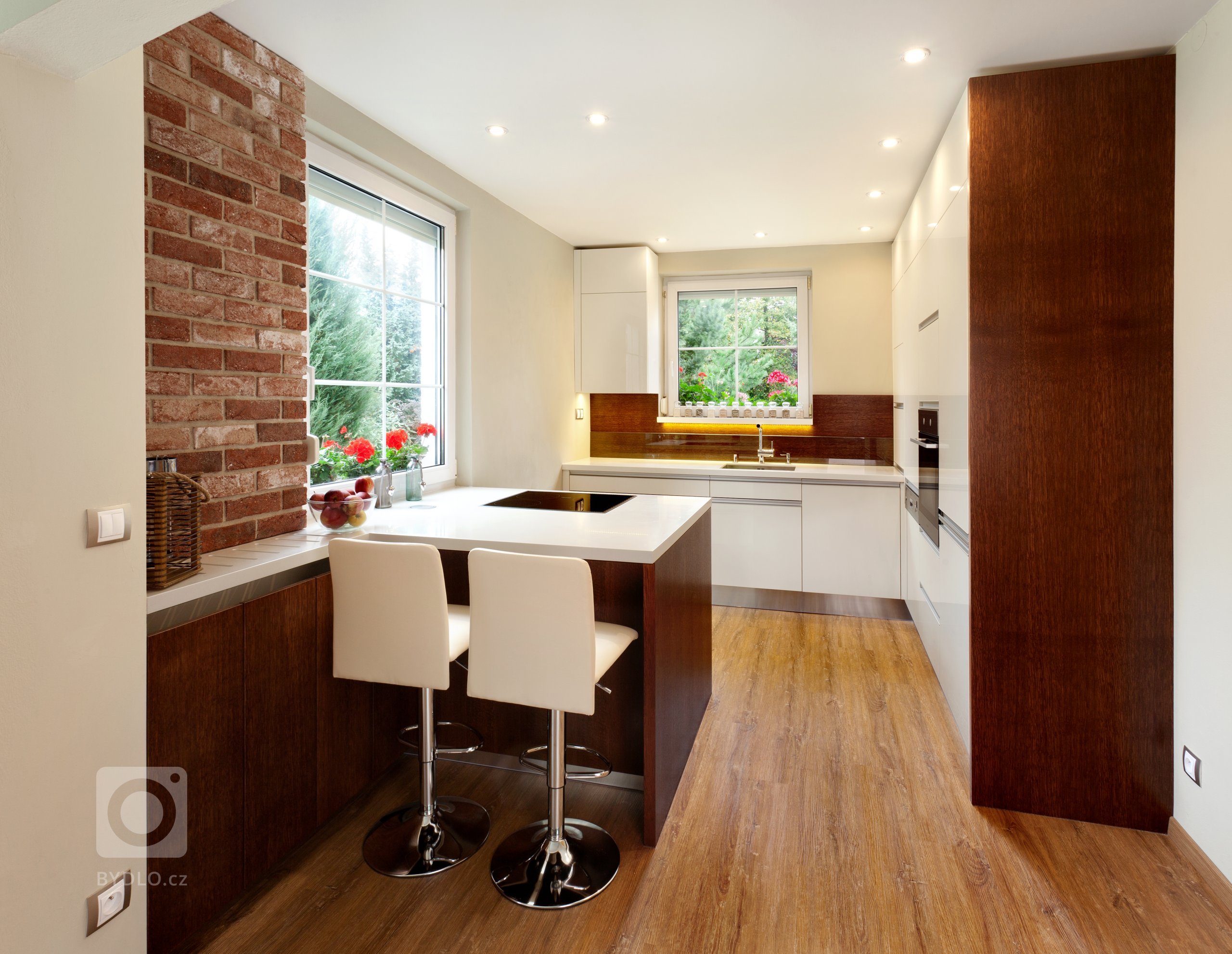 Představujeme vám malebnou kuchyň, která kombinuje moderní bílé povrchy s teplými tóny dubového dřeva. Přestože místnost není zrovna prostorná, i tak se nám podařilo skvěle ji vybavit – a to doslova od podlahy ke stropu! Kompaktní systém úložných prostor je vybaven zapuštěnými úchyty,…