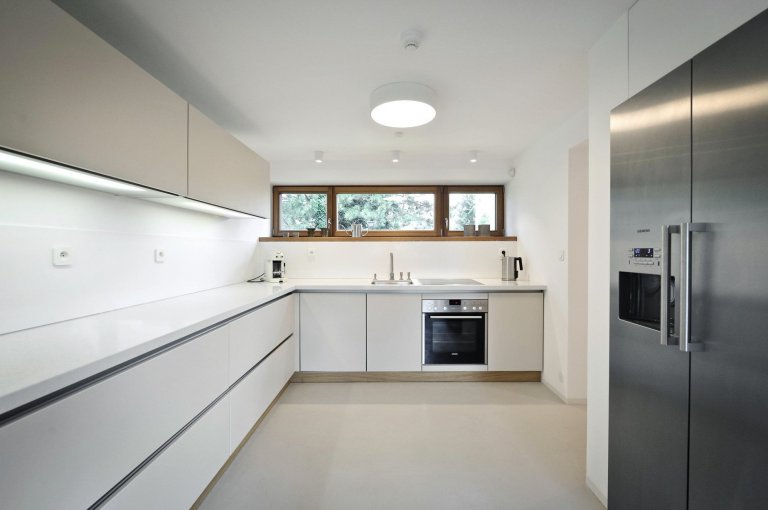 Vila již dříve prodělala drobné stavební zásahy a úpravy prostor v suterénu. Při detailnějším řešení se ale práce pozastavily a po společné schůzce na místě jsme se s klienty domluvili na zpracování návrhu interiéru i za cenu dalších stavebních úprav.