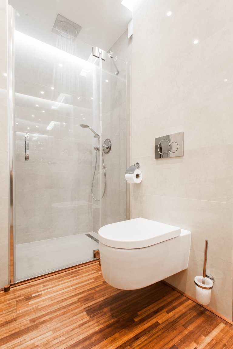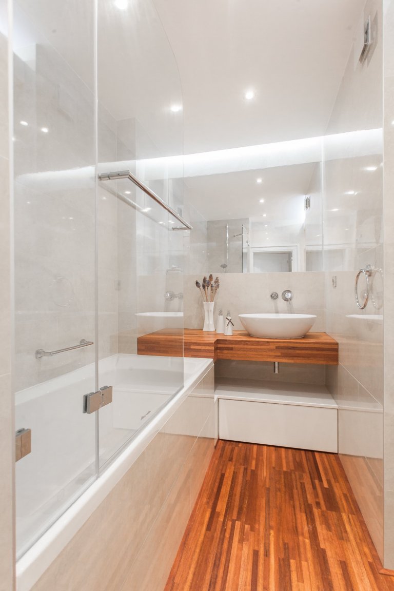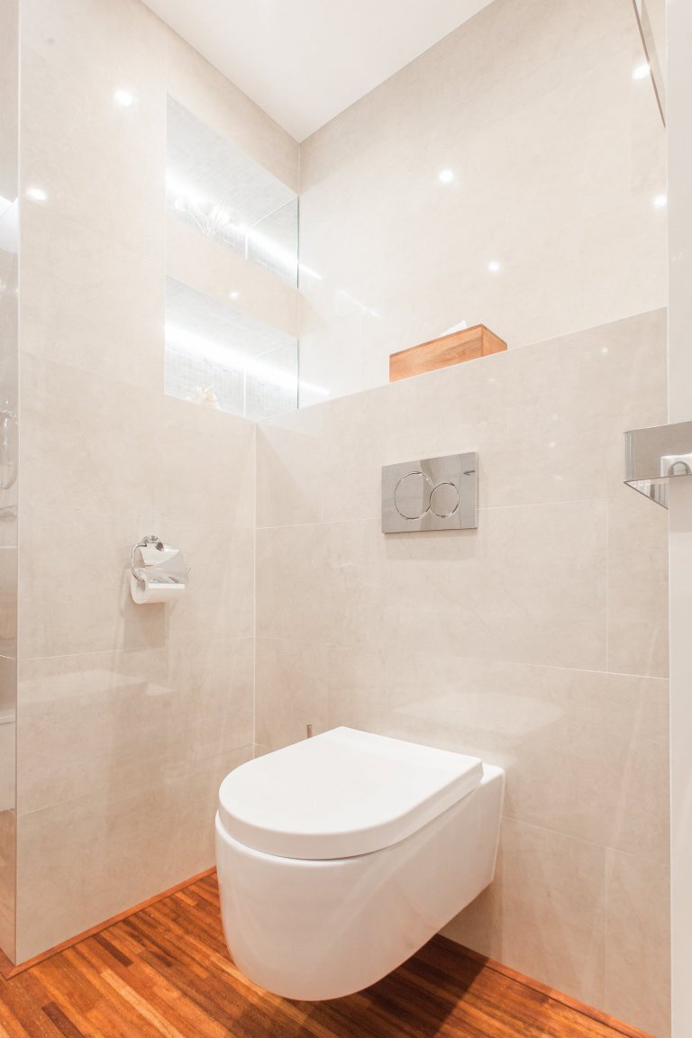 Rekonstrukce hygienického zázemí v tradičním vihohradském bytě měla zásadně zlepšit komfort jeho užívání. Ze stávající nevyhovující koupelny, odděleného WC a dvou technických místností vznikly dvě nové koupelny a jedna technická místnost. Obě koupelny jsou v elegantním designu odpovídajícím charakteru bytu, s podlahou z tropického dřeva.