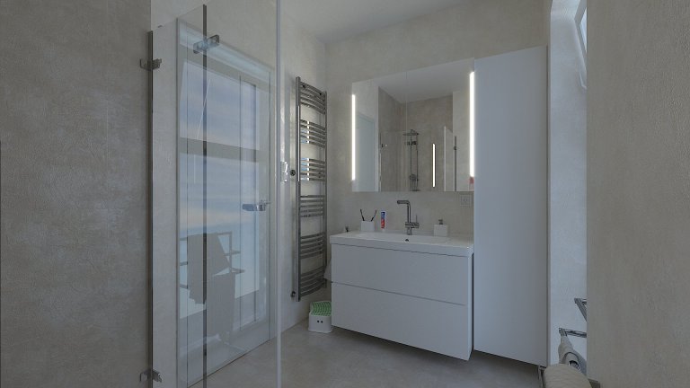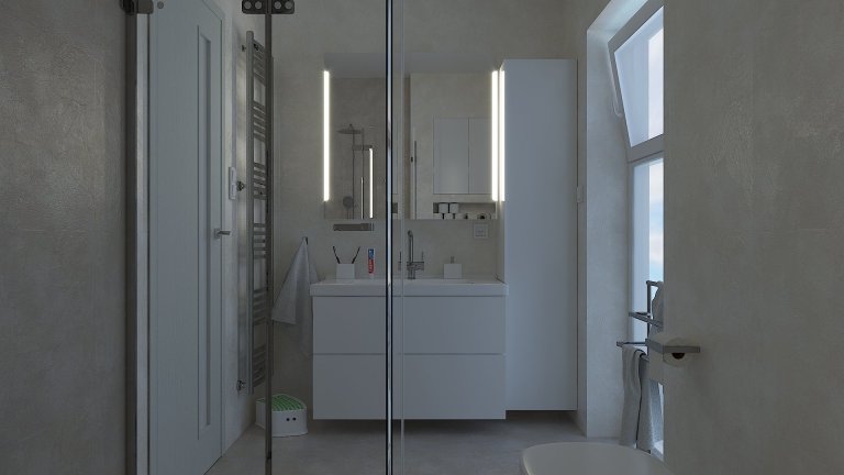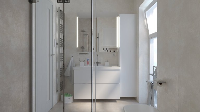 Malý prostor, rozvody připraveny - bylo tedy nutné se s jasně daným rozmístěním sanity a doplňků popasovat a navrhnout či vybrat takové, které do prostoru zapadnou. Požadavkem byla také bezespárovost povrchů a prosvětlený interiér.