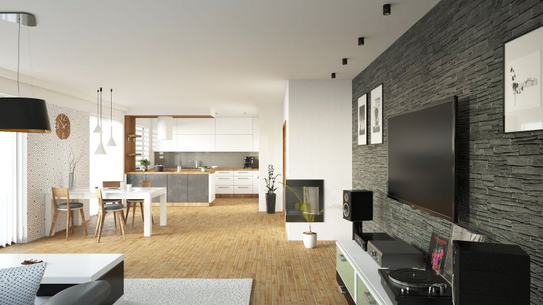 Vizualizace kuchyně s obývacím pokojem do novostavby