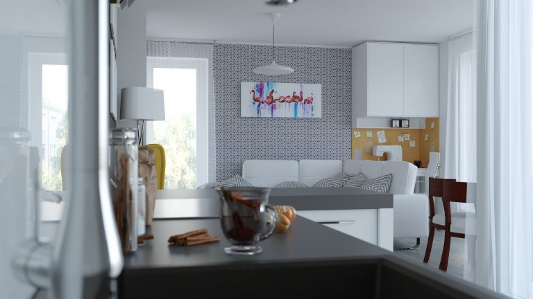 Byt v novostavbě, který navrhne developer, s sebou vždy přinese výzvy. Nejen, že prostor bývá řešen tak akorát, ale často ne úplně vhodně. Obvyklým problémem bývá i při spojení obývacího pokoje s kuchyní nedostatek místa na prostornou realizaci. Majitelé takového bytu však již nějakou představu měli, a tak spolupráce při návrhu obývacího pokoje s pracovním koutem pro šicí stroj, navrženou obývací stěnou, jídelním stolem z původního bydlení a moderní kuchyňskou linkou v kombinaci, kterou si majitelé už předem určili, šla jako po másle;) I přes celkově menší prostor se našlo místo na relaxační zónu s pohodlným ušákem pro čtení při lampě.
