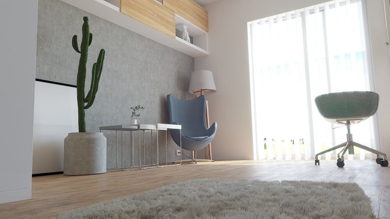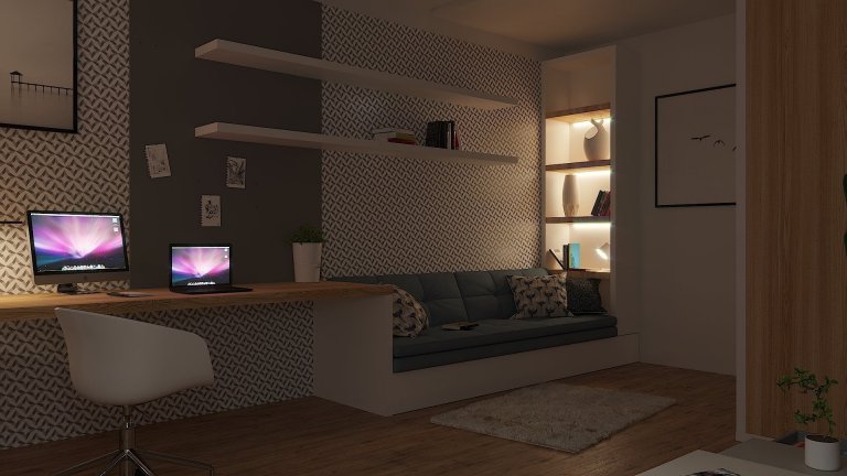 Návrh pracovny/relaxační místnosti pro čtení knížek. Nábytek na míru.