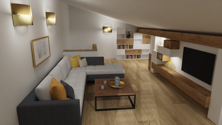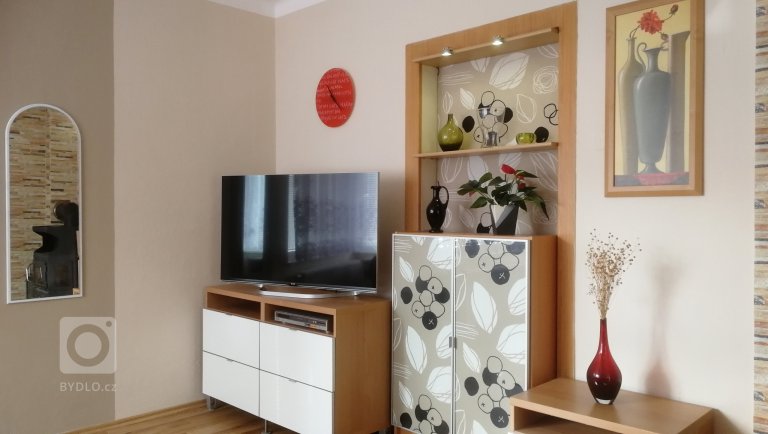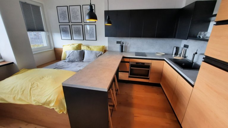 Ložnice pro pár, který chtěl u postele místo na knihy a na oblečení šatnu.