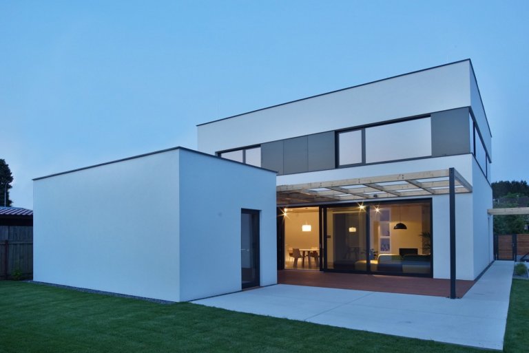 Novostavba rodinného domu v městské zástavbě, pozemek 450m2.