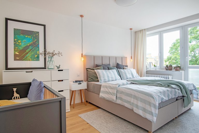 Od mladé rodiny jsme dostali zadání na rekonstrukci bytu. Maximálně otevřít prostor bytu. Vytvořit pocit vzdušného, světlého bytu s krásnou dřevěnou podlahou. „Také si přejeme větší a praktickou koupelnu, ale hlavně nechceme chromované prvky v interiéru.“