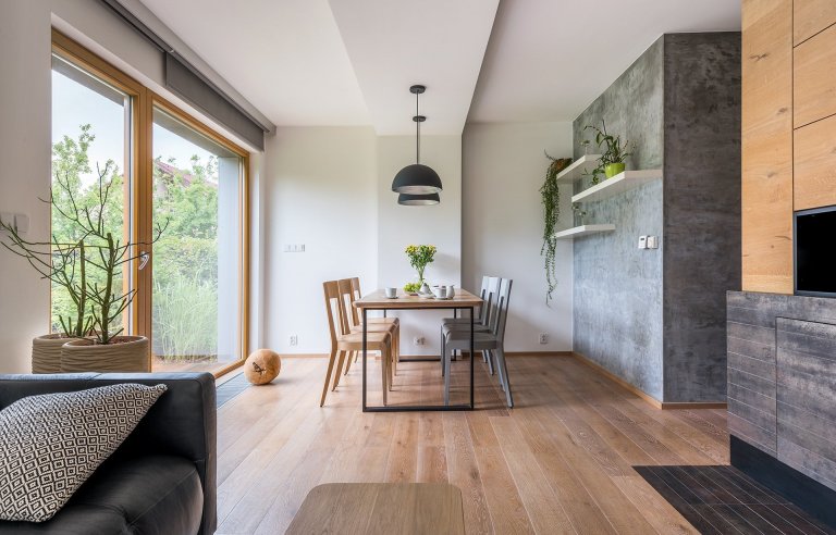 V případě moderního rodinného domu nešlo o nějakou důkladnou rekonstrukci, ale o osvěžení interiéru a nastavení jednotné linky, která se měla vinout celým domem a zčásti zasáhnout i do zahrady.