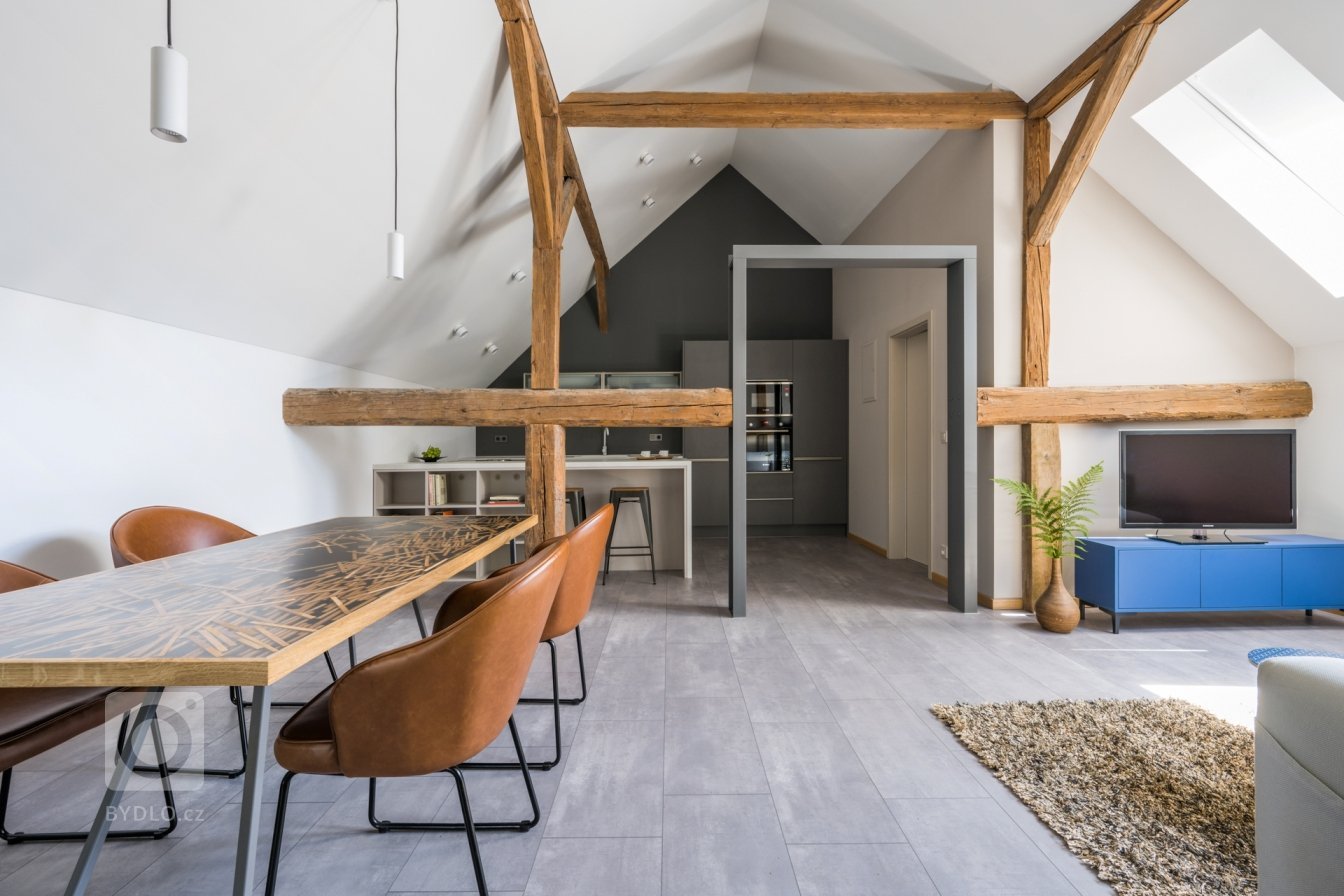 Přestavba dosud neobyvatelné půdy statku, proběhla k naší i klientovy spokojenosti. Během této přestavby jsme využily původní dřevěné trámy. Dostatek světla poskytují střešní okna, i bohatě osázené osvětlení. Je zde využitý i prostor v hodní části nad ložnicí, který slouží jako odpočinková…