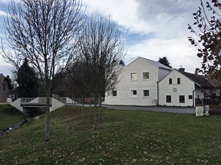 Historii nemá smysl kopírovat, ale ani popírat. Lze v ní čerpat inspiraci, reinterpretovat současnými výrazovými prostředky ověřené kvality a funkce. V tomto ohledu je stavba koncipována jako současné vyjádření klasického vesnického domu. Ctí tradici lapidární hmoty se sedlovou střechou a její výsledný tvar reaguje na princip organického růstu aditivním přidáváním dalších hmot, který je zejména pro venkovská sídla charakteristický. Rozměrné okenní otvory posunuté do líce stěn zajišťují dostatečné proslunění a "opticky vtahují" exteriér dovnitř. Titanzinková střešní krytina a provedení zaatikových žlabů patří k současnému architektonickému repertoáru.